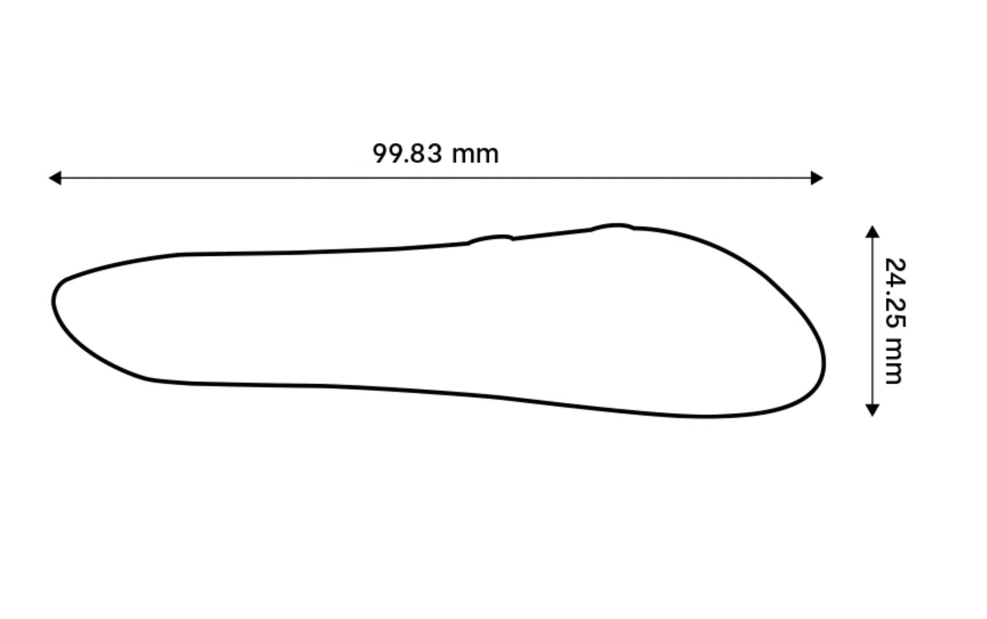 9.98 cm x 2.29 cm x 2.43 cm (~3.9" long). Tiny but mighty.