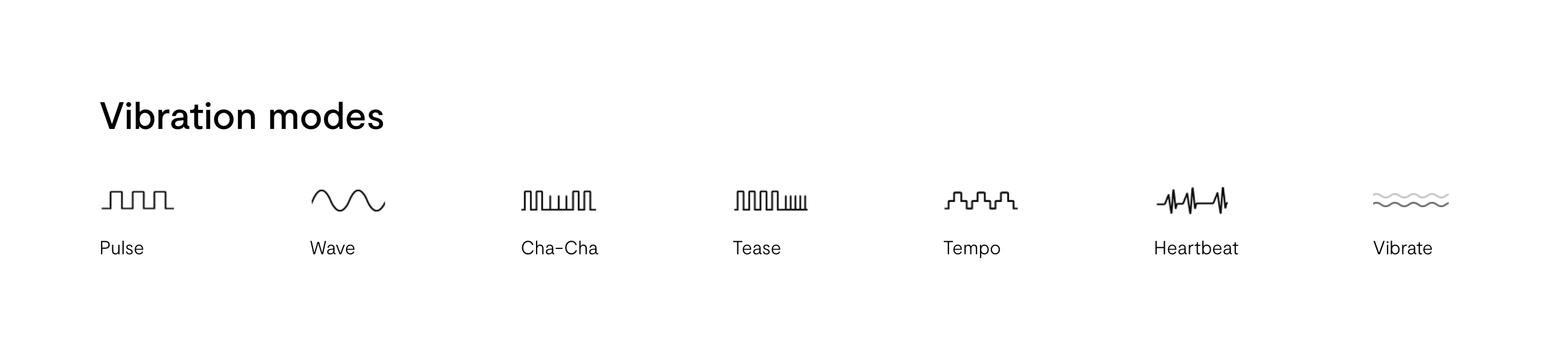 Mode 1 – Constant Vibration: Super rumbly, strong, the default. Feels like it’s throbbing more than buzzing.Mode 2 – Deep Pulse: A bit softer but somehow even deeper. The motor feels like it's winding up and down in slow motion.Mode 3 – Tease Mode: Not for me. Way too much waiting. Long slow pulses, tiny zaps – more annoying than arousing.Mode 4 – Wave: One of my top picks. Smooth rises, lovely comedowns, great rhythm for slow buildup.Mode 5 – Tempo: Similar to Wave, but with sharp, punchy variations. Great for edging – kind of like controlled chaos.Mode 6 – Heartbeat: Completely unpredictable, which can be amazing or frustrating depending on your mood.Mode 7 – Cha-Cha: Steady pattern with short bursts – decent for teasing, not my top tier.